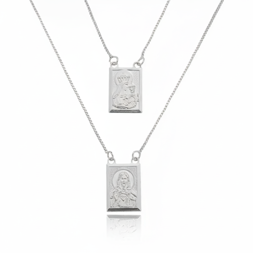 DUPLICADO - Escapulário Religioso - Banhado a Ródio Branco