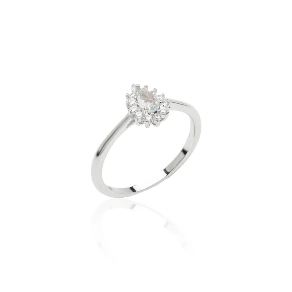 O Anel Gota é feito em prata 925 legítima, com uma pedra central em formato de gota cercada por microzircônias. Um design clássico, leve e encantador que combina com qualquer ocasião.
