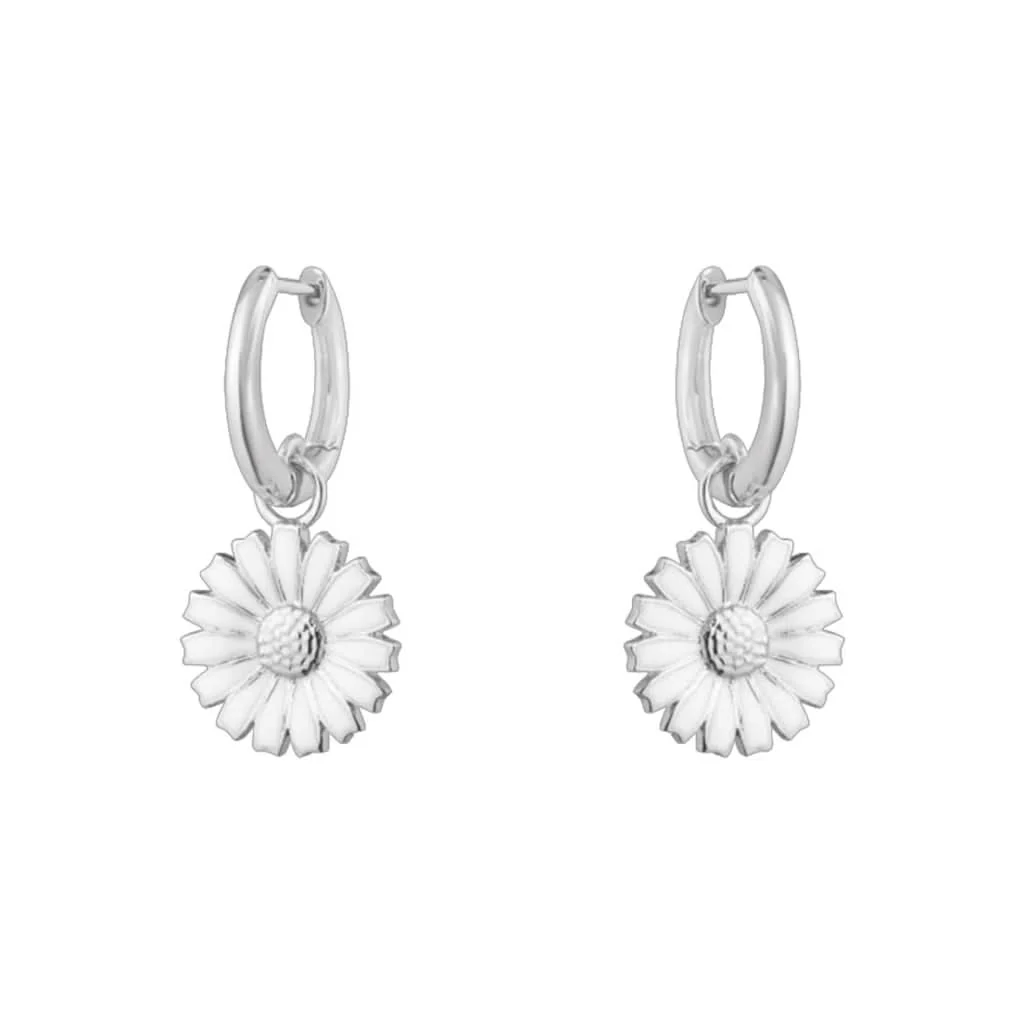 Brinco Argola Margarida - Banhado a Ródio Branco