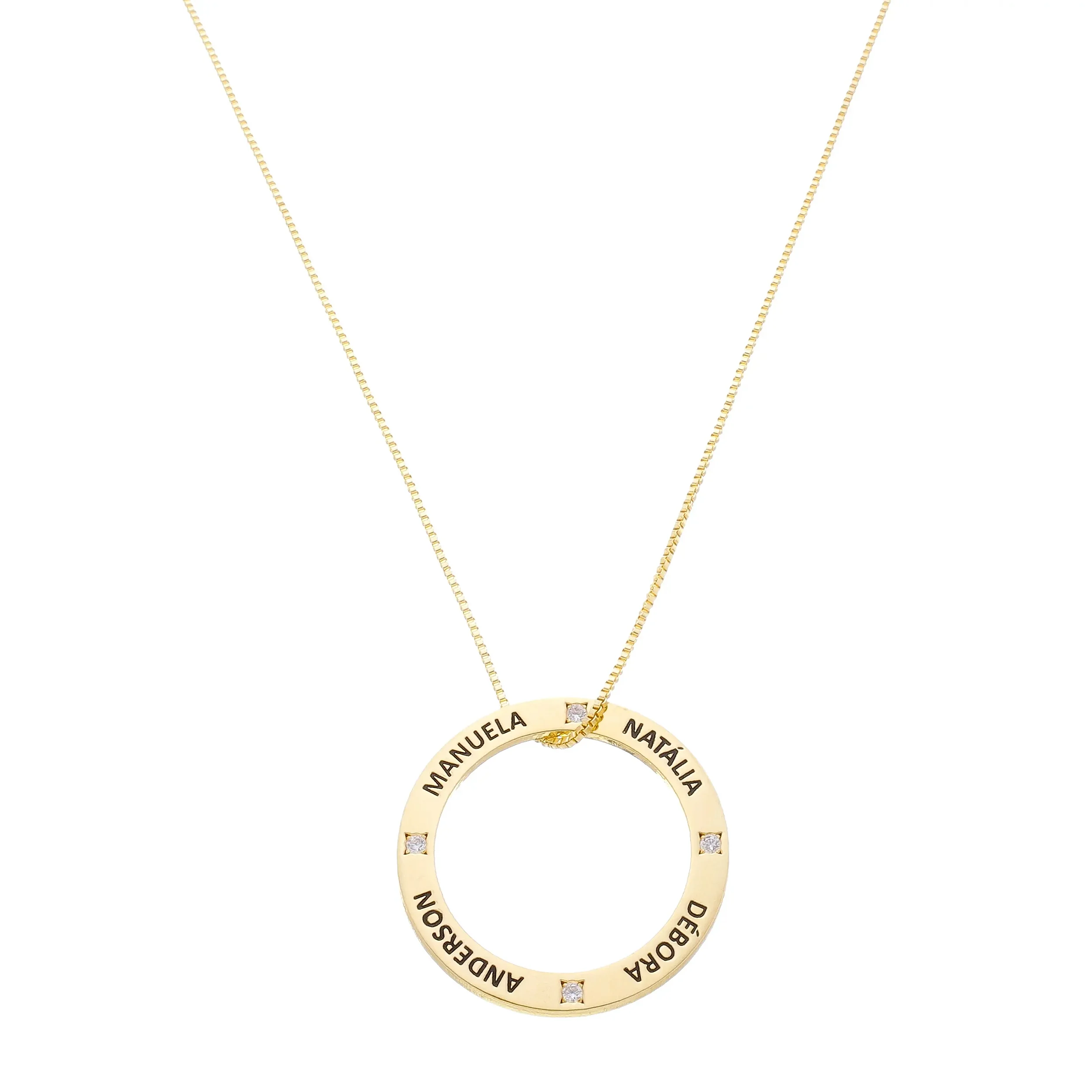Eternize suas conexões mais importantes com este colar elegante e personalizável. Com um design clean e sofisticado, o pingente de argola permite que você grave os nomes de pessoas especiais, criando uma joia com significado único e exclusivo.