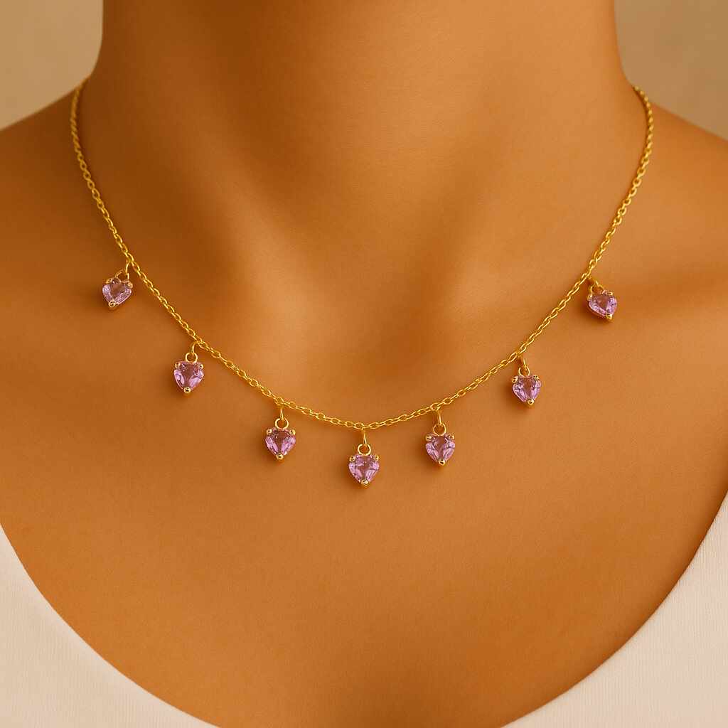 Gargantilha Coracões Lilás