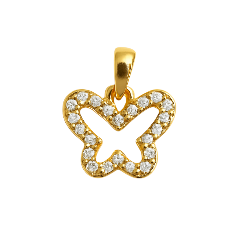 O Pingente Borboleta Cravejada Banhado a Ouro 18k é perfeito para representar novos ciclos, leveza e força feminina. Com acabamento vazado e zircônias cravejadas ao redor do contorno, ele traz brilho na medida certa e um toque delicado ao seu mix de colares ou correntes favoritas.