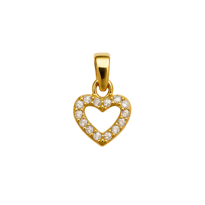 O Pingente Coração Cravejado Banhado a Ouro 18k é uma peça clássica e atemporal que representa amor, afeto e delicadeza. Seu formato vazado traz leveza ao visual, enquanto as zircônias cravejadas garantem o toque de brilho que encanta.